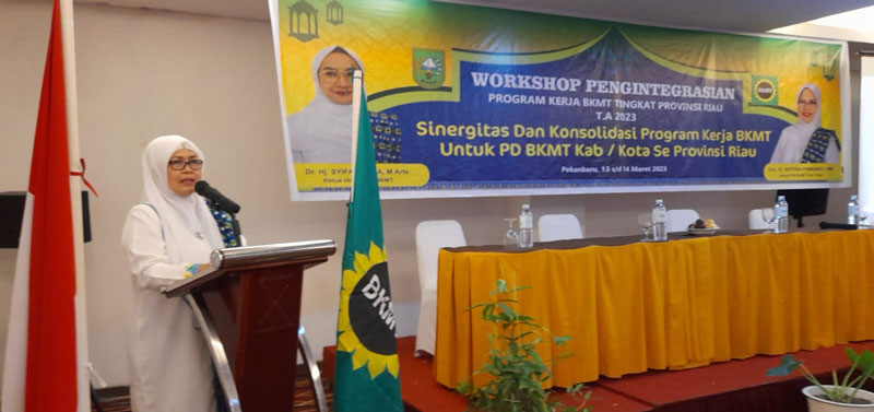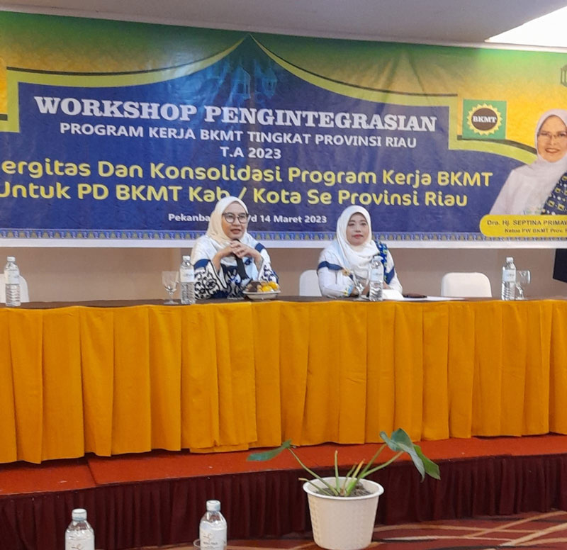 BKMT Provinsi Riau menaja Workshop Pengintegrasian Program Kerja BKMT Tingkat Provinsi Riau Tahun Anggaran 2023 selama dua hari, sejak Senin sampai Selasa 13-14 Maret 2023.